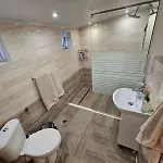 I badrummet finns även en separat toalett och en dusch. Det finns också hårtorkar, badrockar och handdukar för gästernas komfort.
